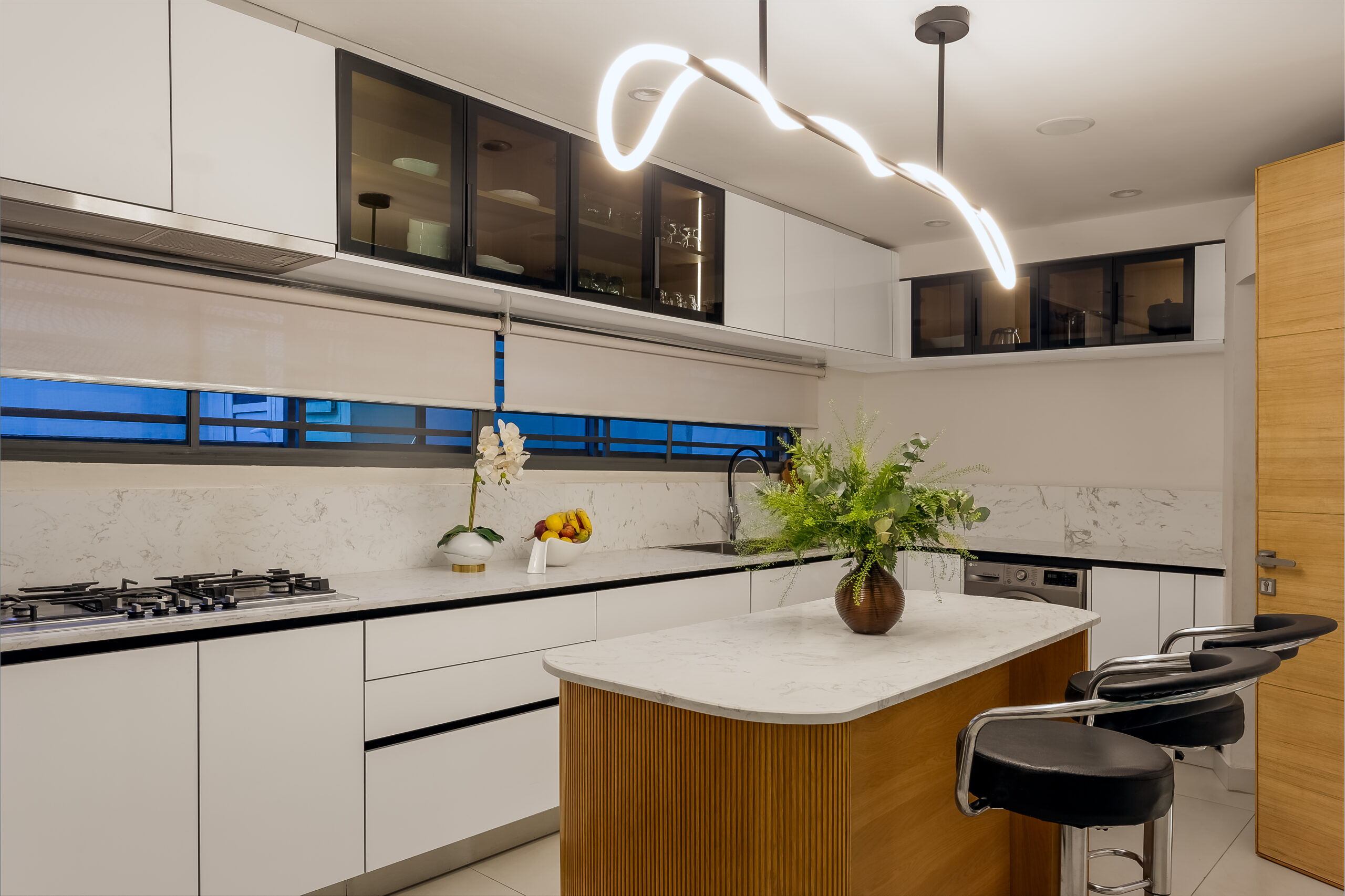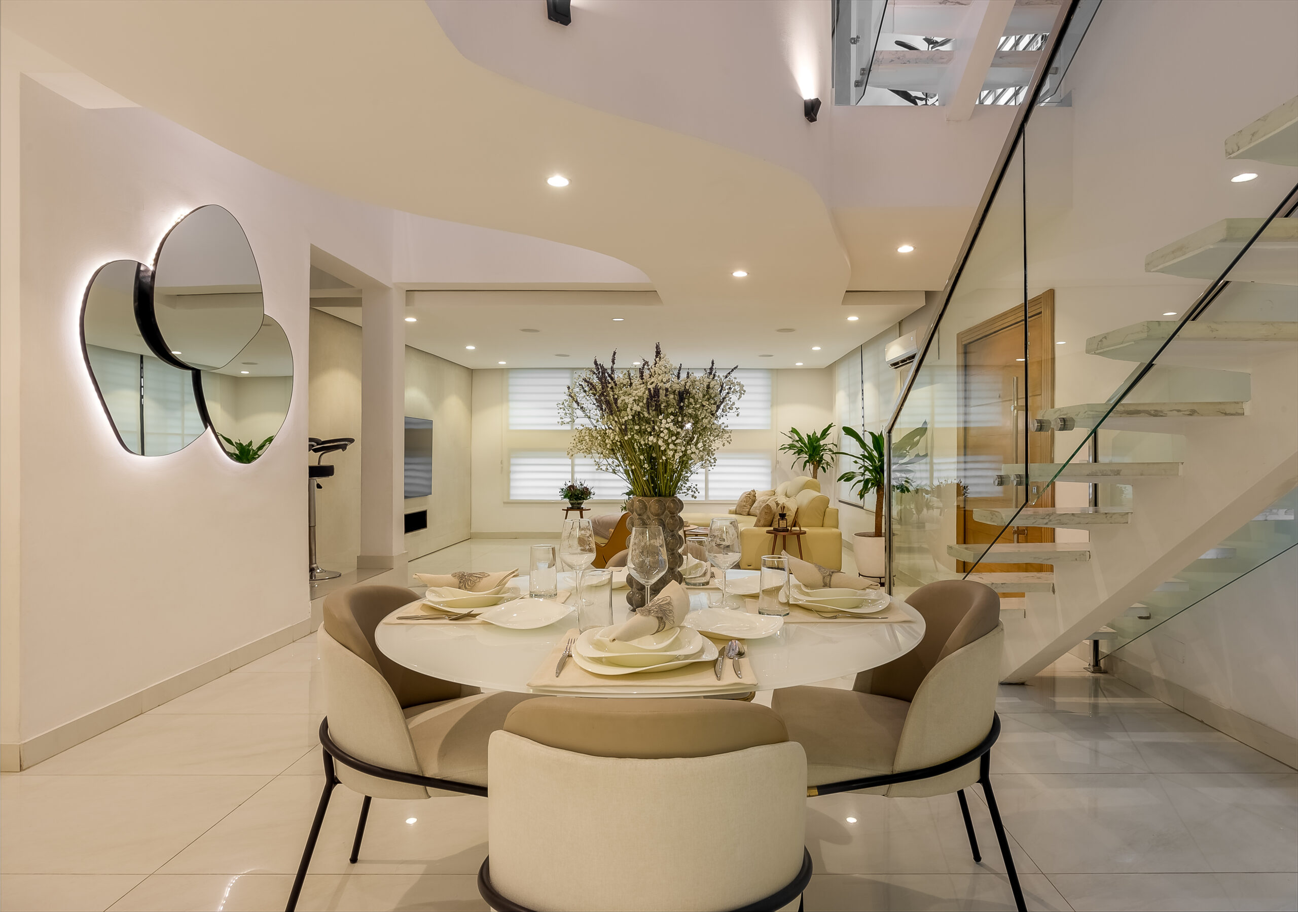 The Bewajis, a young family of four, desired a home that felt serene, functional, and easy to maintain while remaining elegant and enduring. Their brief centred on maximising space to ensure 4 bedrooms, a study, a box room and a mini staff quarters, improving natural light, and creating a refined yet relaxed environment that could evolve gracefully with their growing family.